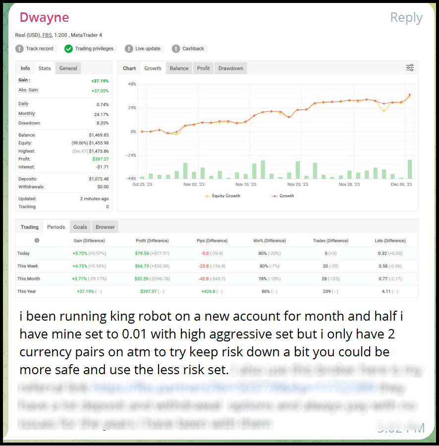 We provided our investor access details to them to verify the account. You can click the link below this box to see the verified stats and trading history…