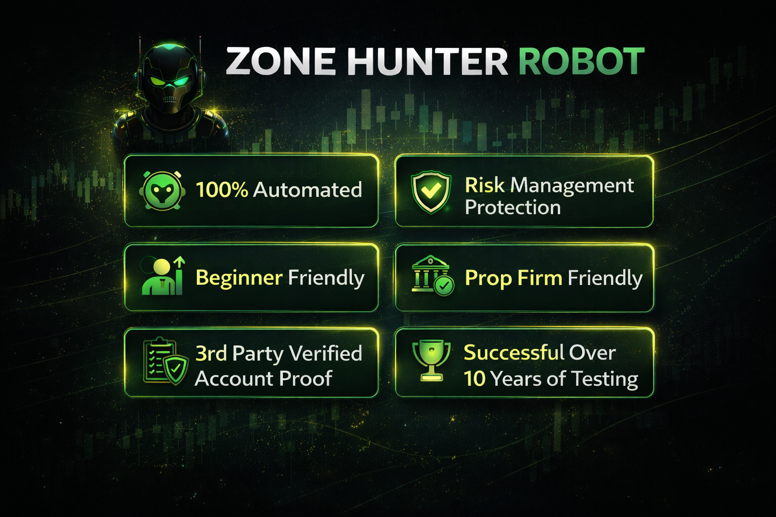 Zone Hunter Robot is a truly set and forget year after year adaptive trading system that will grow your account faster than almost any other comparable investment vehicle.